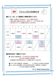 今後も皆様にとってより良い医療を提供できるよう、スタッフ一丸となって努力していきますので、今回の診療時間の改定についてご理解いただきますようお願いいたします。