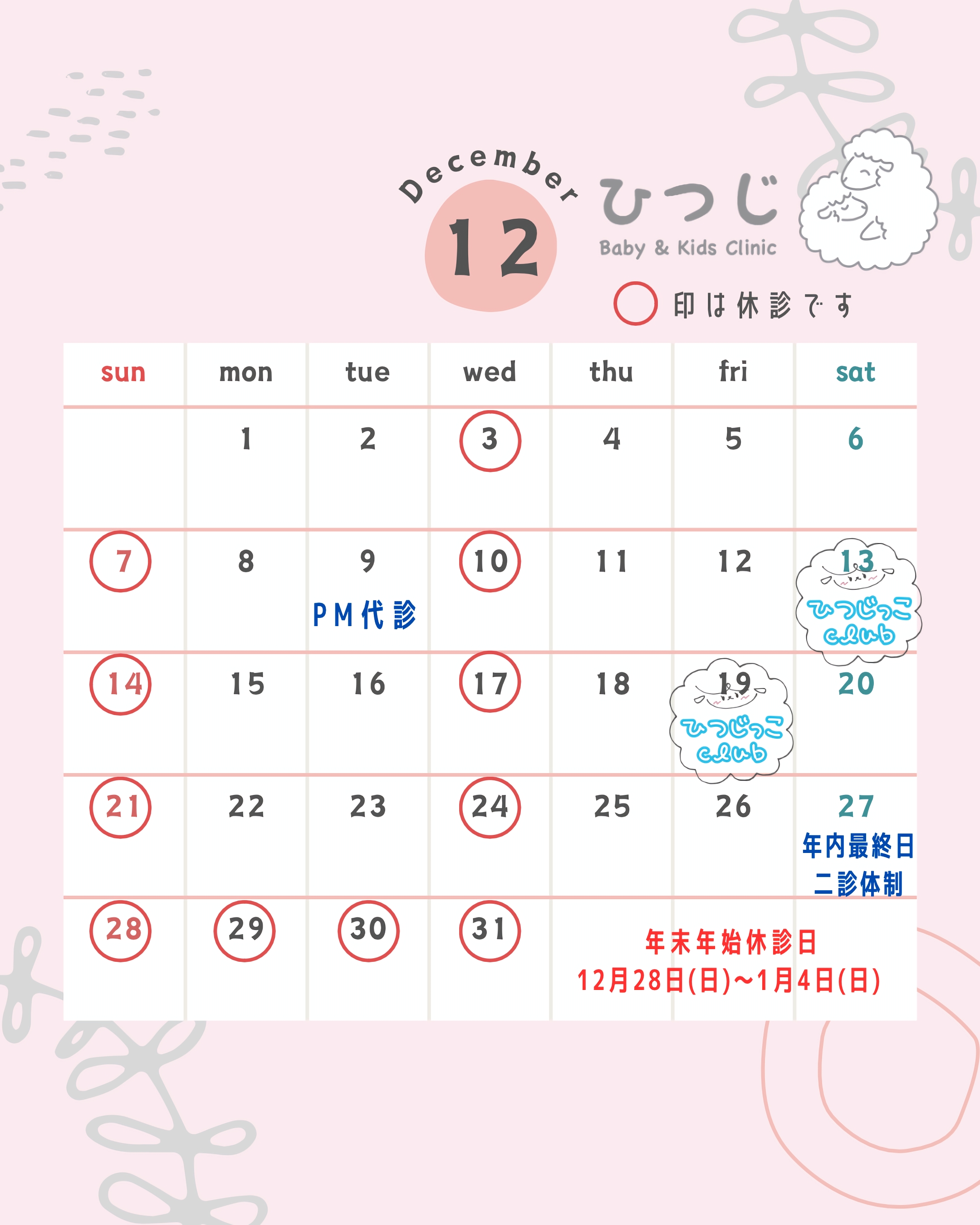 年末年始の休診日:12月28日(日)〜1月4日(日)