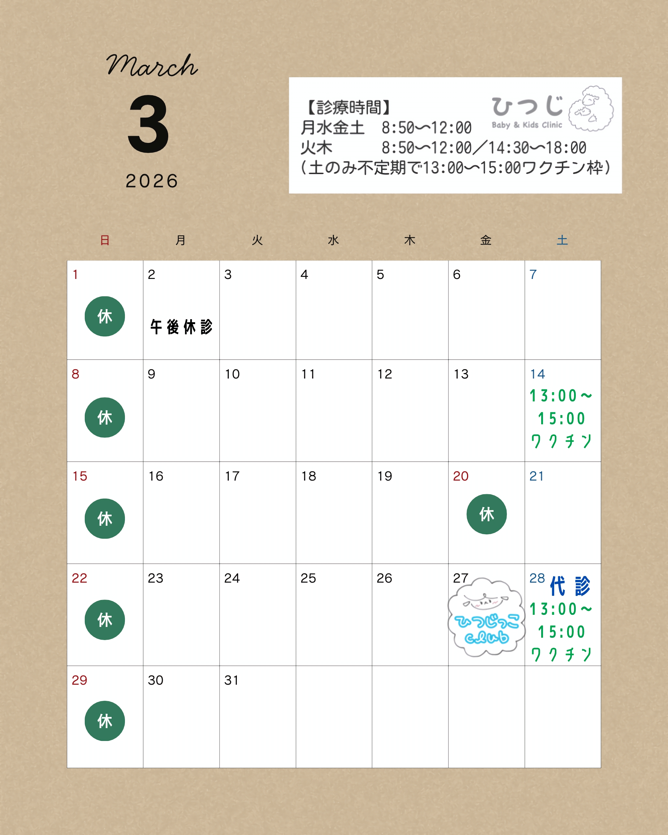 「共働きなので平日ワクチンが難しく、土曜にワクチンを打ちたい」という声をいただくことがあり、その声にお応えしたいという思いで、3月より不定期で土曜の午後にワクチン専門外来を始めます。ぜひ、ご利用ください。